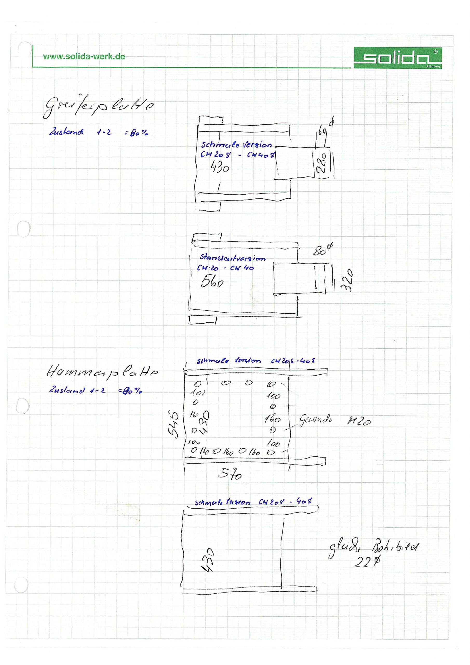 Hammerplatte in schmaler Version für CW20S-CW40S (Maße siehe Bild)
